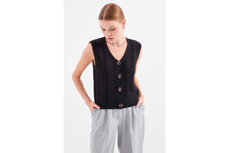 Dügmeli Kisa Triko Yelek