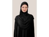 Öncelikle namaz elbisesini başınızı ve kollarınızı geçiçerek giyiniz. Sonrasında dilediğiniz zaman dökümlü yapısıyla boynunuzu kapatan pratik hijabı başınızdan geçirerek boneye ihtiyaç duymadan kullanabilirsiniz.