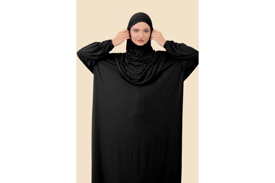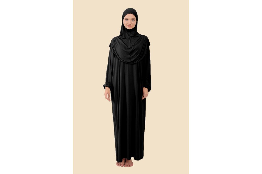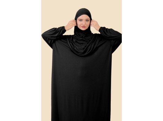Kadın Tek Parça Tesettür Elbisesi Tak Çıkar Başörtülü Organik Pamuklu Lastikli Kolu Kaymaz Penye Kumaş Dökümlü ve rahat kumaşı ile boynunuzu da örtecek şekilde tasarlanan namaz elbisesi, bone takmanıza gerek kalmadan size tam bir tesettür imkanı sunar. Istediğiniz zaman Pratik hijabınızı çıkararak da kullanabilirsiniz,Bu sayede, farklı ortamlarda farklı tarzlarda tesettürlü olabilirsiniz Pratik ve kullanışlı